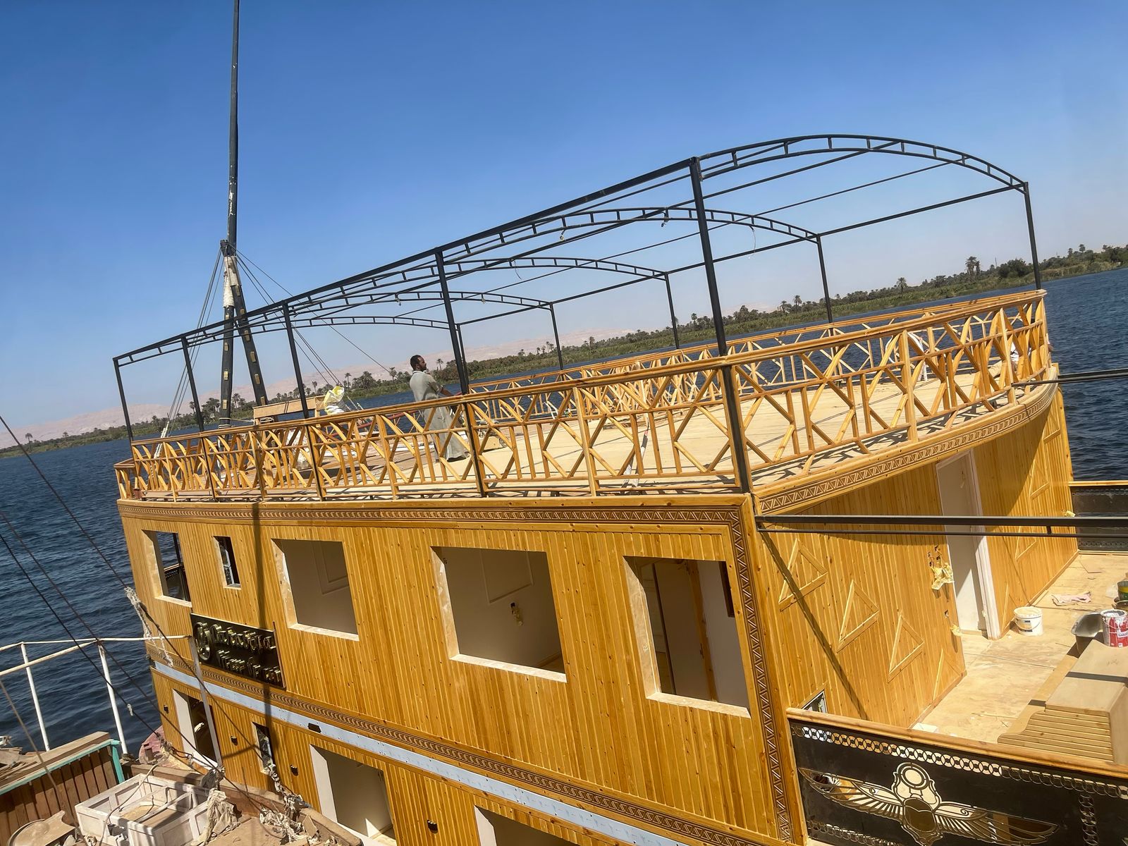 Les dahabiehs, bateaux traditionnels des princes d’Égypte, offrent un cadre élégant et confortable, avec une capacité limitée de passagers (32 dans votre exemple), garantissant une atmosphère conviviale et personnalisée.